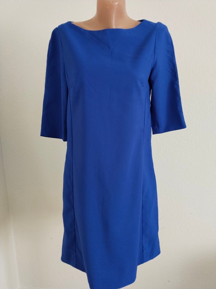özel dikim saks mavisi m beden midi elbise, kısa kollu ve tekne yaka detaylıdır. Parlak dokusu ve sade tasarımıyla ofis için şık ve rahat bir seçimdir. iki kol arası 45 cm boy uzunluğu 92 cm bel ölçüsü 46 cm