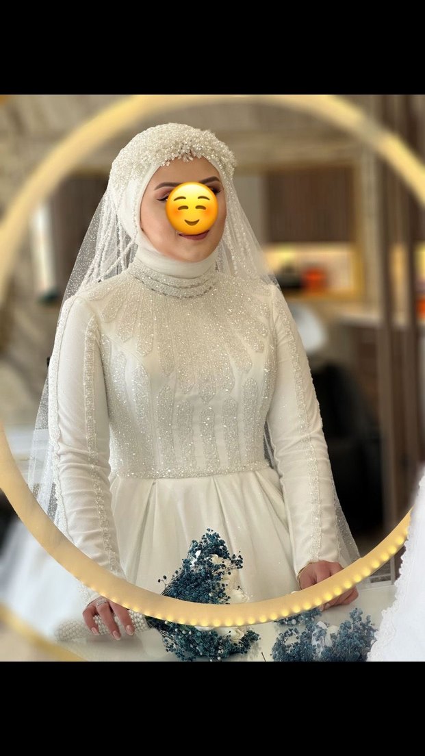 Sadece düğün günü saatlik giyildi ancak kuru temizleme yapılmadı. 1-2 yerinde boncuk düşmüş ancak belli bile olmuyo. Onun dışında durumu çok iyi. 173 boy 70 kilo ile giyildi normalde 40-42 beden ancak arkası ipli olduğundan ayarlanabilir 38-42 arası giyilebilir. Kuyruk ile boyu 240cm ön 200 cm falandır. Kuru temizlemeden dolayı pazarlık vardır.