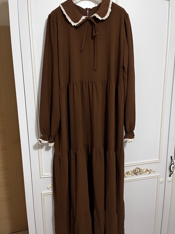 3-4 kez giydim büyük beden 52-54 beden uyumludur boyum 167 elbise boyu ayak bileğimin altına gelmekte