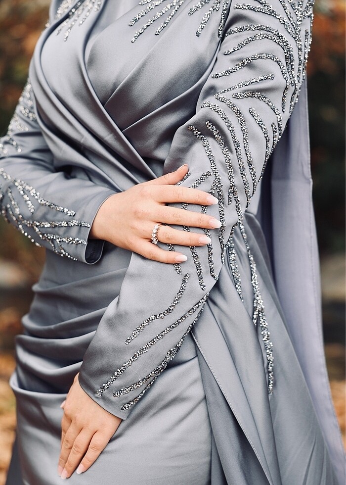 Sadece bir kez giyildi şalıyla beraber gönderim saglanacaktır. Hiçbir sorunu yoktur asil ve şık duran bi saten kumaşa sahiptir