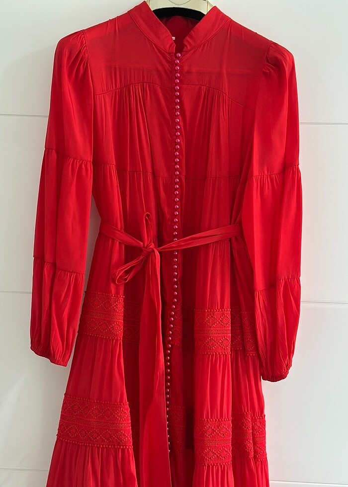 Hiç bir sıkıntısı yoktur, bir defa kullanılmıştır. L bedendir. Kırmızı ve narçiçeği arasında bir renktir.