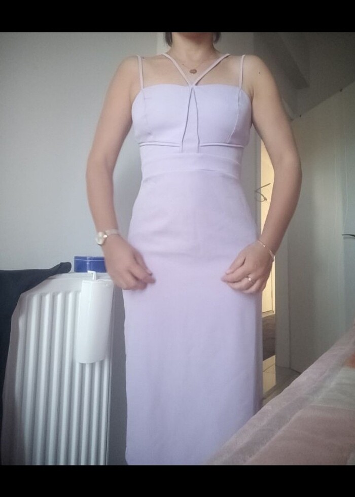 Ürün bir kere kullanıldı modeli duruşu çok şık kumaşı kırışma yapmaz lila renginde