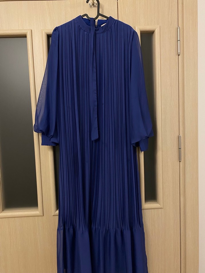 1 kere giydim şalı da hediye olarak gönderiyorum Piliseli, yüksek yakalı ve bol kesim lacivert uzun elbisedir.