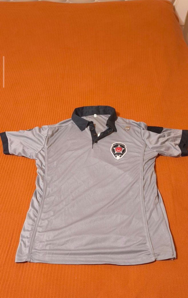 Erkekler için düğmeli yaka, kısa kollu ve vücuda oturan kesime sahip gri polo tişört. Yumuşak ve sıcak kumaştan, baskılı deseni M ve L beden mevcuttur