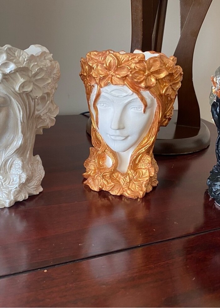 Doğal taş tozundan yapılmış bu eşsiz mumluk ile yaşam alanınıza zarafet katın! Altın detaylarla süslenmiş ve zarif bir kadın siluetine sahip olan bu el yapımı mumluk, hem dekoratif bir parça hem de içindeki mumla birlikte huzurlu bir atmosfer yaratır. Sanatsal detayları ve şıklığıyla her ortamda göz alıcı bir etki yaratan bu mumluk, hem kendiniz hem de sevdikleriniz için mükemmel bir hediye seçeneği!