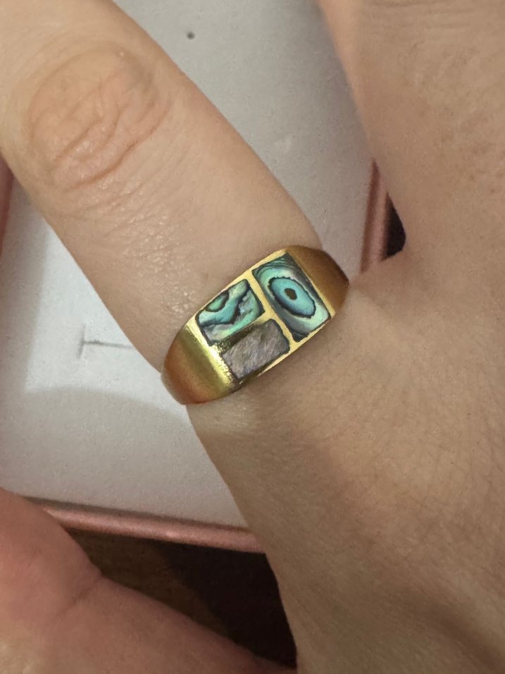 Parlak altın renkli, tokalı tasarımlı, vintage bohem tarzda kadın yüzüğü. Turkuaz ve doğal taş detaylarıyla romantik akşamlar için ideal.