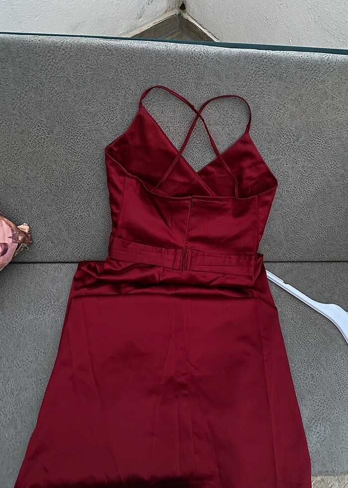 Özel tasarım diktirdim saten arkası çapraz askılı bordo.okul balomda bir defa giydim
