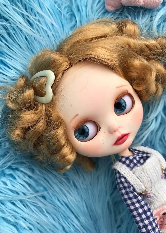 Gözleri ve kirpikleri değiştirdim Yüzü yeniden şekillendirip makyajını yaptım. Boyun aparatı taktım, böylece kafası sağa sola öne eğilebilir Kıyafetleri el yapımıdır Yedek elleri ile göndereceğim
