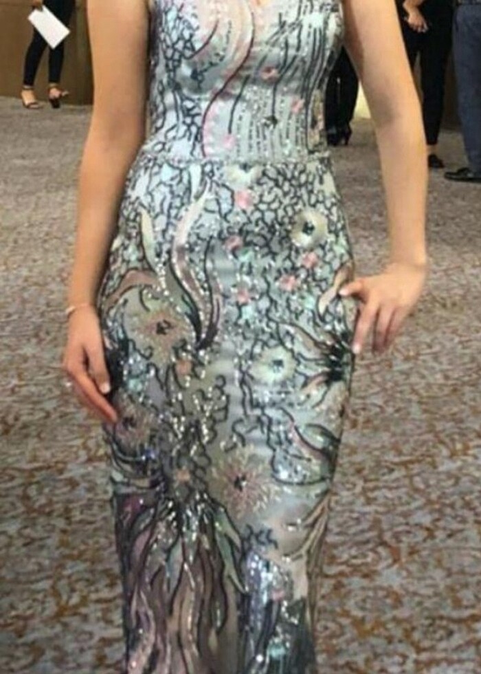Bir kez giyildi 38 beden (koltuk altından biraz daraltma yapildi) özel tasarım..şık, ışıl ışıl gece kıyafeti #geceelbisesi #abiye #uzunelbise