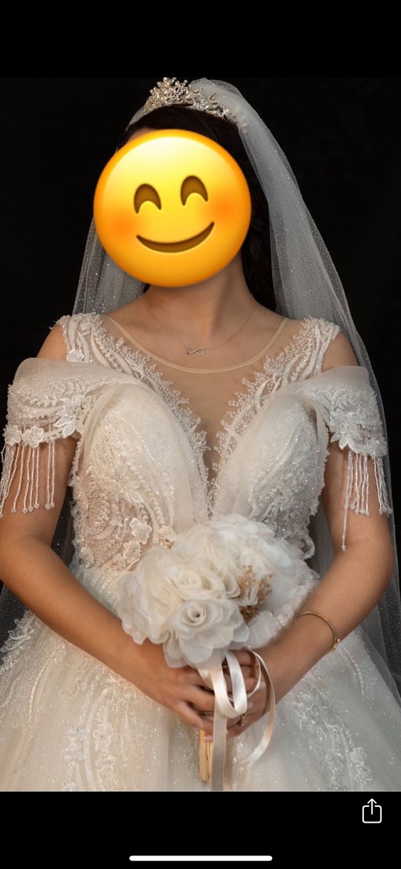 Ürün kırık beyaz rengindedir bir kere giyildi düğün ardından işe başladığım için yoğunluktan kuru temizleme yapılmadan dolaba kaldırdım. Alan kişi kuru temizleme yapacağı için fiyatı uygun tuttum. Özel tasarım gelinliktir. Son fotoda göründüğü gibi kolları çok taşlı olduğu için terziye söktürdüm öyle kullandım giydiğimde 1.65 boy ve 60-65 kilo arasındaydım