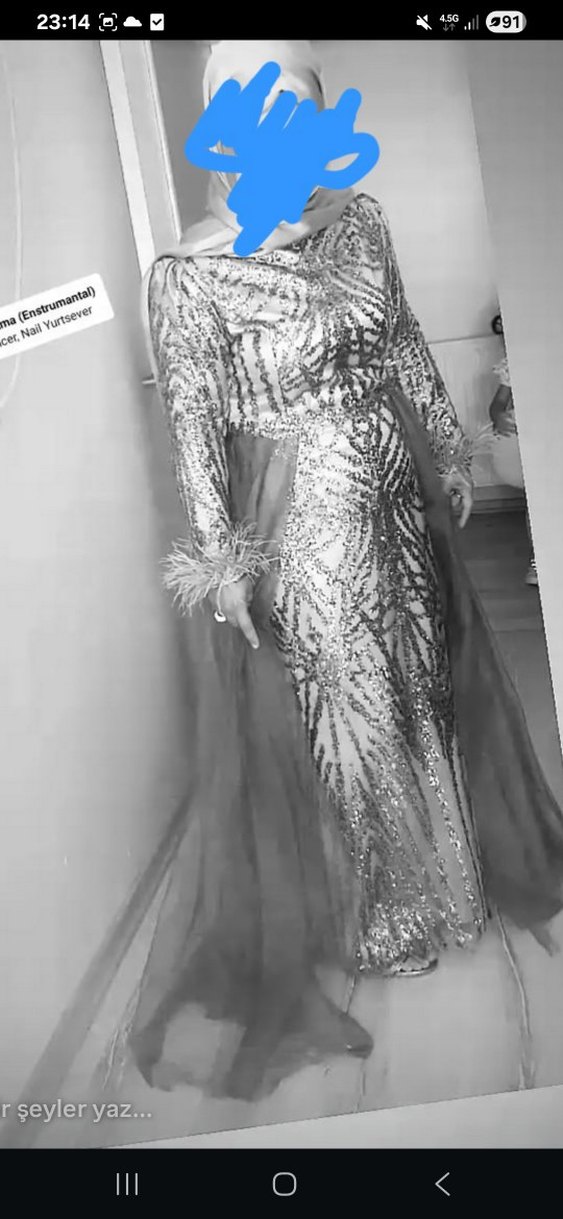 Bu uzun kol tüy detaylı pullu abiye zarif ve şık görünümü ile dügün için uygundur.✨sadece bir kez ogullarimin sünnet dügünunde giydim