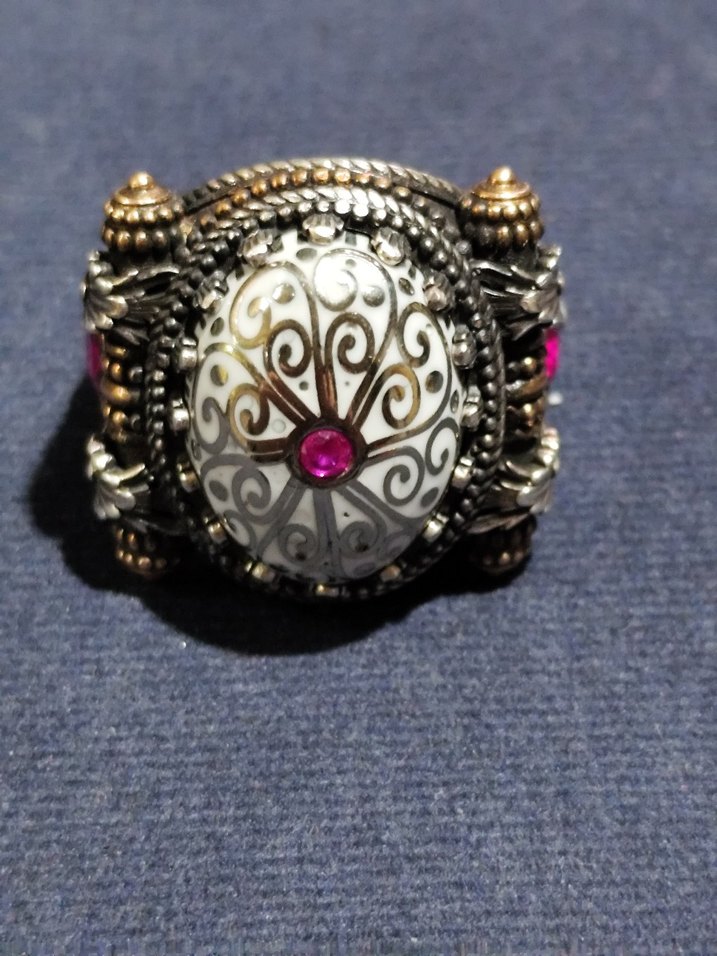 sıfır üründür 26 gram üstü vardır yani daha fazla ağırlığında 9.25 ayar gümüş yüzük beyaz görünen kısımlar hortumlu dişidir