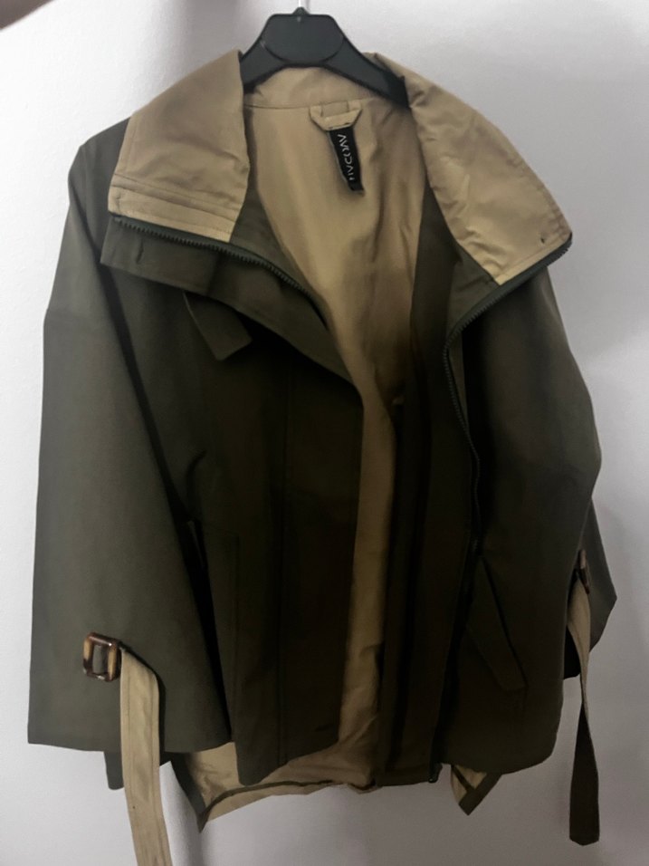 Kemerli, kısa ve bol kesim kadın trençkot. Suni kumaştan, haki ve gri tonlarında, notlu yaka ve askılı kollara sahip. Sokak stiline uygun, günlük kullanıma ideal. Sıfır yepyeni