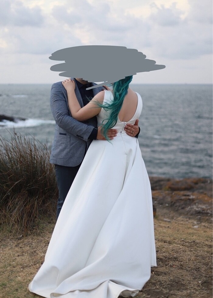 Özel tasarım minimalist saten gelinlik