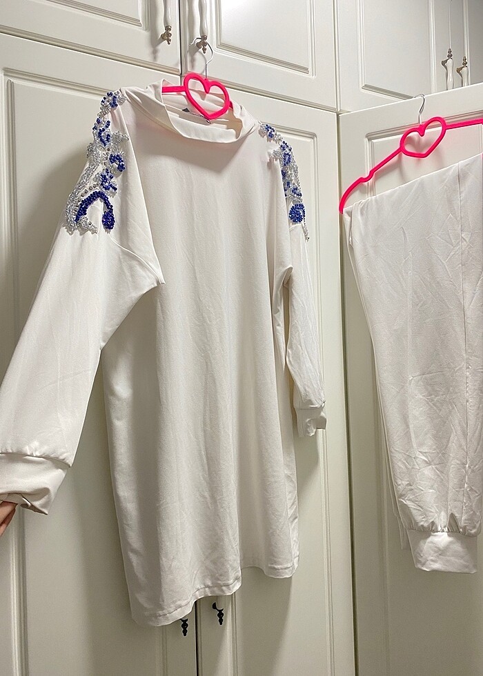 Meis tasarım normal fiyatının yarısına satıyorum. Swarovski el işi işlemeli özel tasarımdır. Bedeni 2 numaradır 38-42 bedene kadar uyumludur. 2 kez giyildi. Lacivert şalla çok şık duruyor. Tunik altına kot kombinle de çok güzel duruyor. Hiçbir kusuru yoktur. Alıcısına şimdiden hayırlı olsun