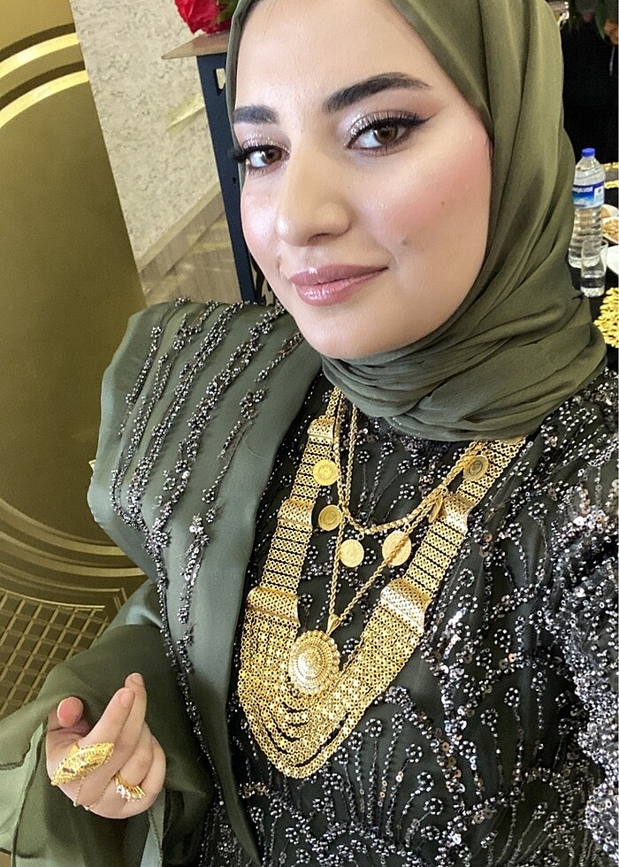 Özel dikimdir 2 saat tek giyildi. 2.5 m şalı ile gönderilecektir. 42-44 beden uyumludur