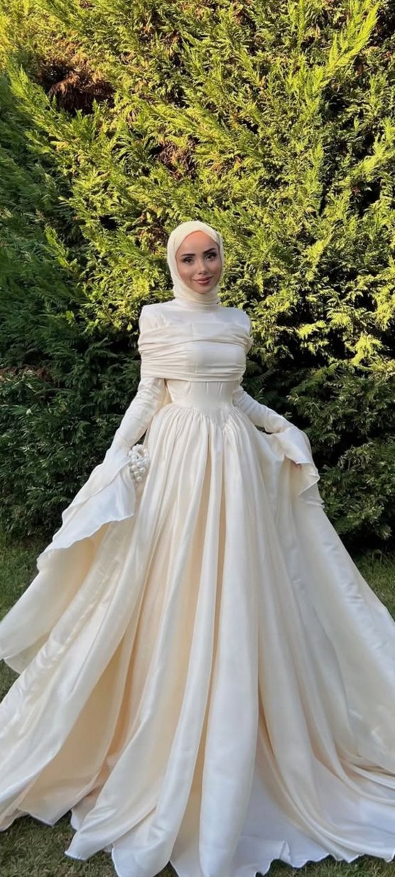 38-42 beden uyumlu tarih belirtiniz rezerve için özel dikim isterseniz 11.500 TL ye dikimi yapılır Uzun kollu, straplez ve drapeli beyaz gelinliktir. Tesettürlü ve sade tasarımıyla uzun boyludur.