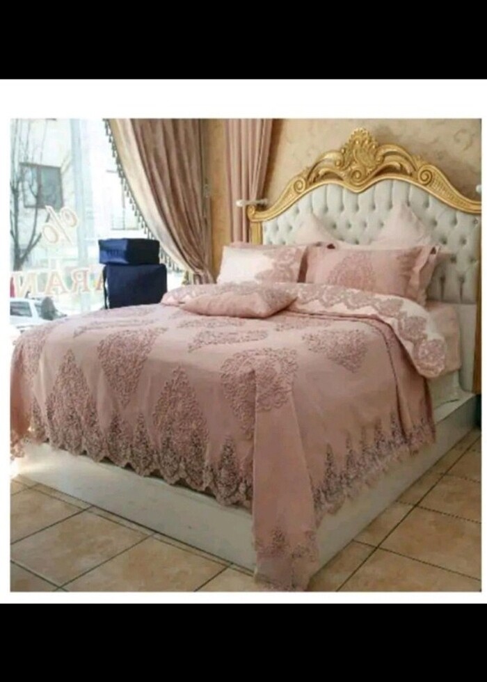 Pudra damask desen king size Set 4 parçadan oluşmaktadır yatak örtüsü ve 3 yastık kılıfı Kumaşı yumuşacıktır sadece örtü olarak kalmaz kaldırmadan pike olarakta kullanabilirsiniz