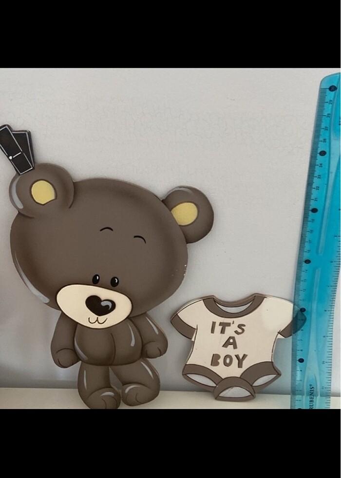 Özel üretim yaptırmıştık. Dolabına duvarına ya da kapı süsü olarak hem evde hem doğum odasına çift taraflı bant ile yapıştırılarak kullanılır. İkisi bir arada fiyatıdır.