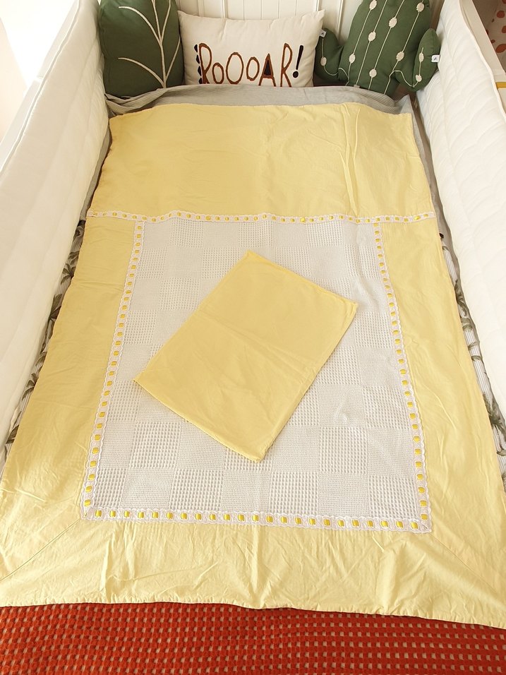 Özel yapım Sarı Bebek Yenidoğan Beşik Pike Nevresim Piko Takımı