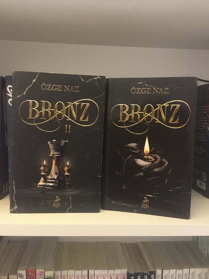 Özge Naz'ın "Bronz" roman serisi, satranç taşı ve mum görselleriyle iki kitaptan oluşuyor.