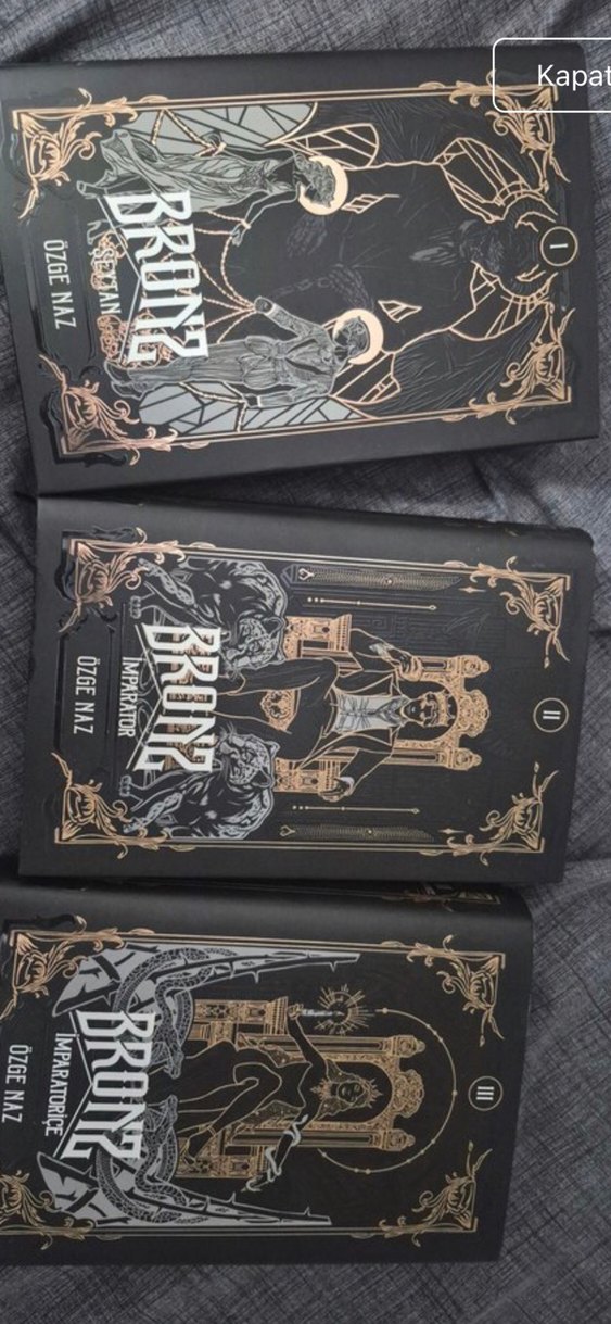 Özge Naz'ın bronz roman seti, ayrıntılı altın kaplamalı kapaklarıyla dikkat çekiyor. Roman koleksiyoncuları için ideal .üç kitap ciltli şömizli posterli ayraçlı ilk baskı raf no