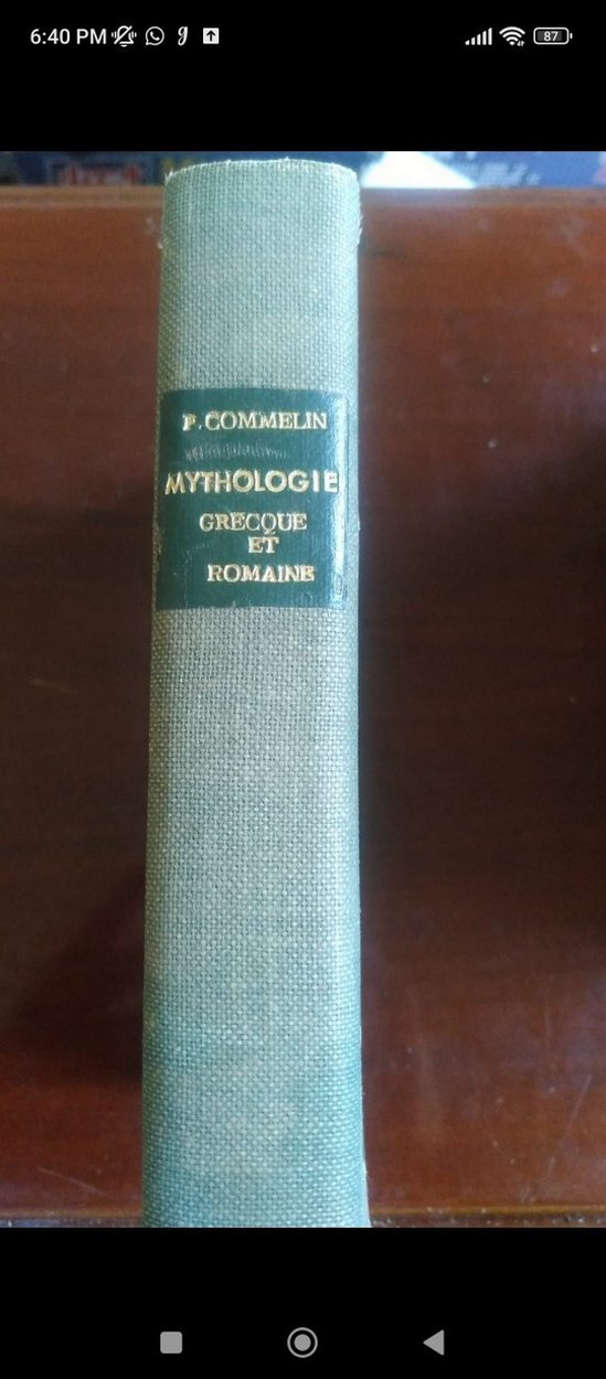 P. Commelin'in yazdığı 'Yunan ve Roma Mitolojisi' adlı sert kapak kitap. Omurgası yaşlanma belirtileri gösteriyor ancak sağlamdır.