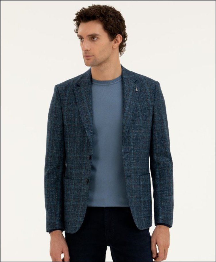 P.Mavi Slim Fit Yün Kaşmir Karışım CEKET