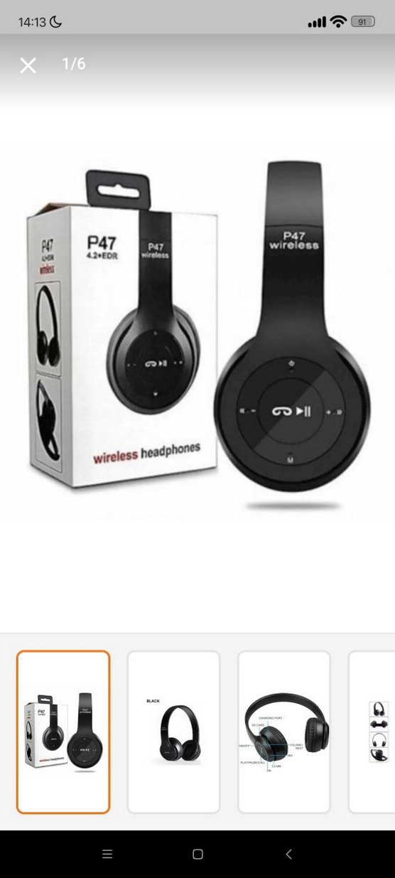 P47 kablosuz kulaklıklar Bluetooth 4.2+EDR teknolojisi ve şık siyah tasarıma sahiptir. Çağrı ve müzik kontrol düğmeleri bulunur.