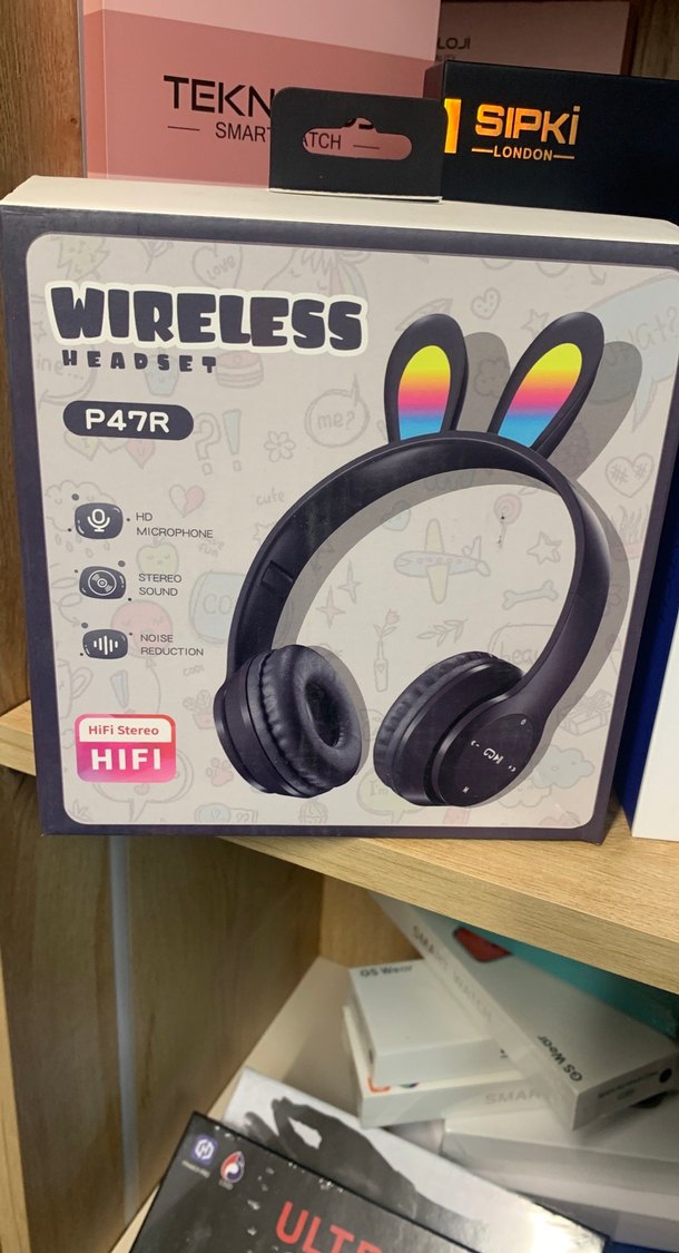 P47R kablosuz kulaklık, HiFi stereo ses, gürültü azaltma ve HD mikrofon sunar. Koyu çok renkli ve rahat kulak pedlerine sahiptir.