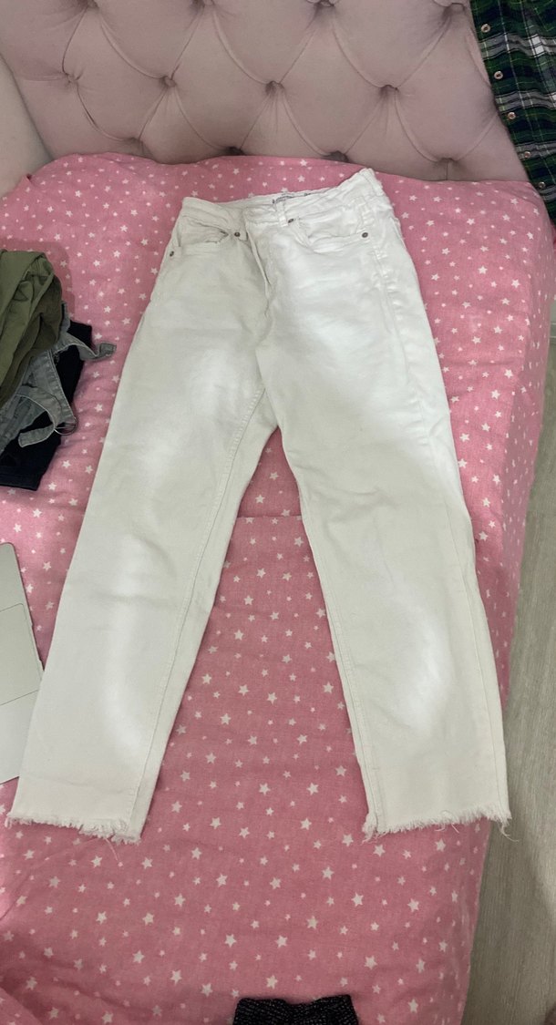 Paça detaylı beyaz mom slim fit kot pantolon jean stradivarious