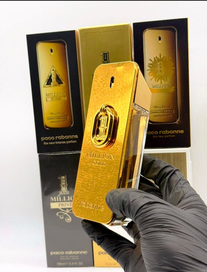 Paco Rabanne 1 Million Gold erkek parfümü, parlak altın şişesi ve çağdaş, gösterişli tasarımıyla dikkat çekiyor. Cesur ve lüks bir koku sunar. ✨