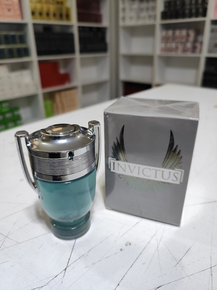 Paco Rabanne Invictus, gri kupa şeklinde şişede modern klasik erkek parfümü, ferah ve enerjik bir koku sunar.