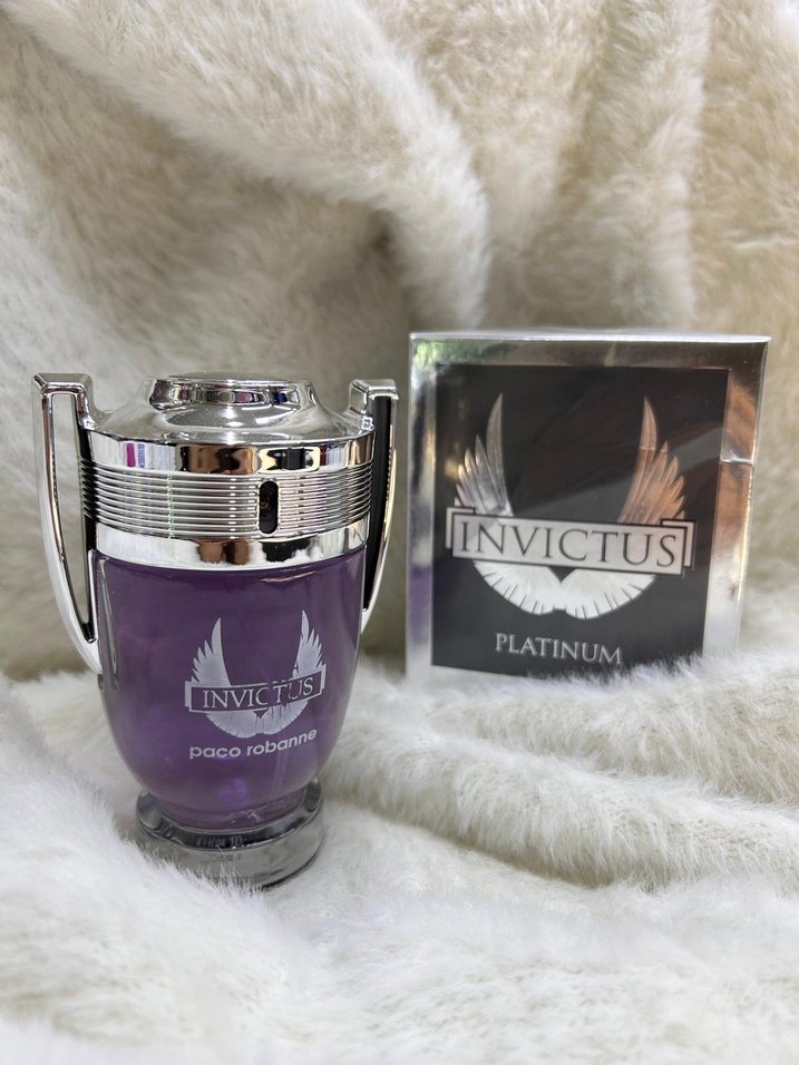 Parlak mor şişede, modern klasik tarzda Paco Rabanne Invictus Platinum erkek parfümü, gösterişli bir hava sunar. ️