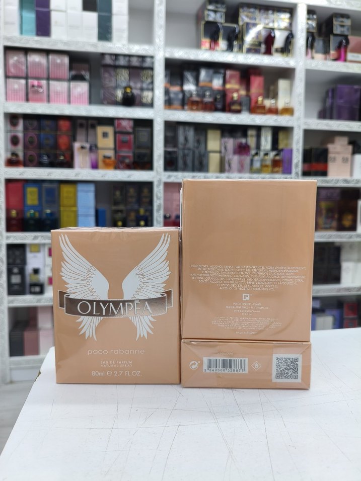 Paco Rabanne Olympea kadın parfümü, 80 ml şişede, kanat figürlü şık ambalajda sunulmaktadır.