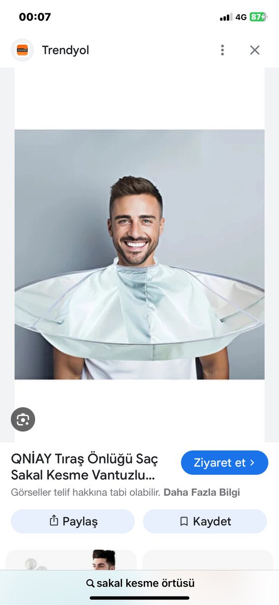 Saç sakal traş önlüğü , saç ve sakal kesimi sırasında saçları toplar ve kıyafetlerin temiz kalmasını sağlar. Boyunda kolayca takılır, koruyucu yüzeye sahiptir. Paketli ve kullanılmamıştır ✂️