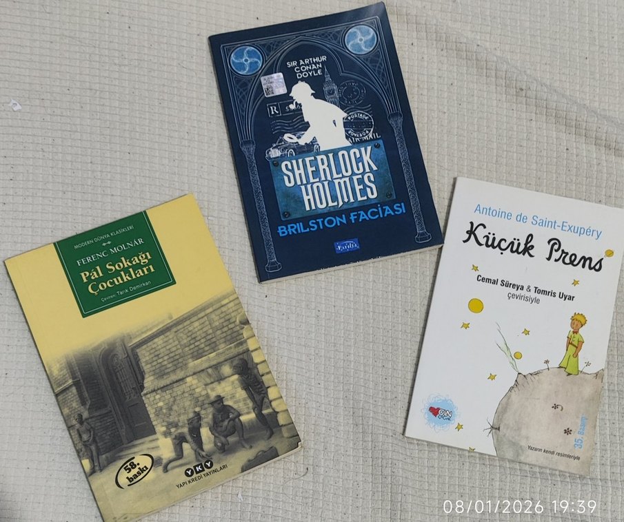 Dünya klasiklerinden oluşan muhteşem bir üçlü set! Set İçeriği: Pal Sokağı Çocukları: Dostluk, sadakat ve cesaretin zamansız hikayesi. (Tam metin) Küçük Prens: Her yaştan okurun kalbine dokunan o meşhur başucu kitabı. HEDİYE: Sherlock Holmes - Brilston Faciası: Polisiye ve gizem dünyasının en ünlü dedektifinden sürükleyici bir macera. Kitapların Durumu: Tüm kitaplar temiz kullanılmıştır. Sayfalarda eksik, karalama veya okumaya engel bir durum yoktur. Sherlock Holmes kitabı, seti alan kişiye hediye olarak gönderilecektir. 4