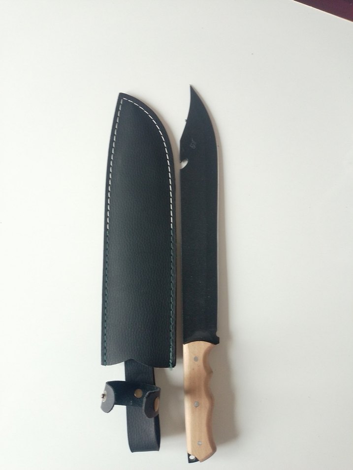 Bej saplı siyah bıçak ve beyaz dikişli siyah kılıf, metal düğmeli kayış ile güvenli kullanım sağlar. Kemere takılır. Kılıf fiyatına pala