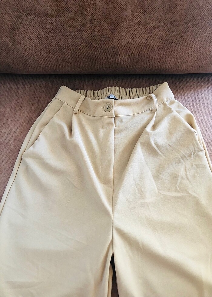 Açık yeşil, arka beli lastikli, yüksek bel bol kesim pantolon. Deneme harici kullanılmadı.