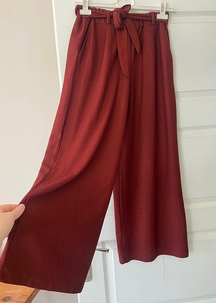 Boy 98 cm hiçbir sorunu yoktur M ve L bedenlere rahatlıkla olur beli hem lastikli hem de kemer görüntüsünde kuşaklı