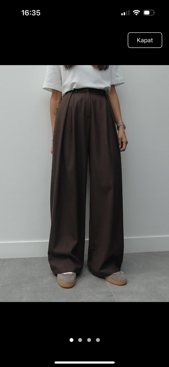 Kadınlar y, kahverengi, salaş kesim ve ipeksi dokulu kumaş pantolon, günlük kullanımda rahat ve şık bir stil sunar.
