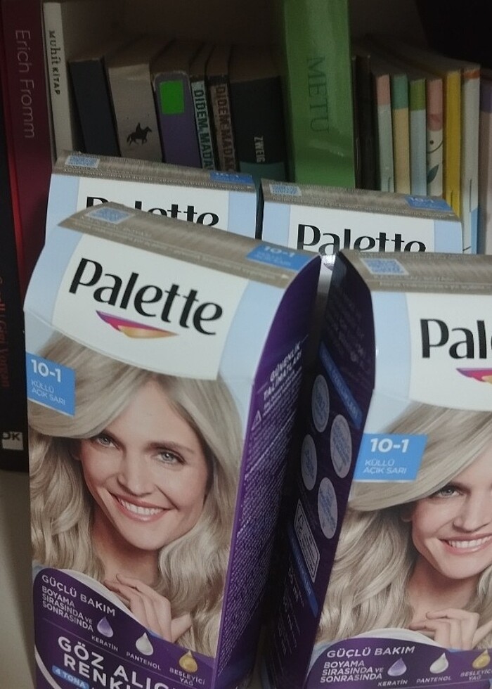 Palette küllü açık sarı 10.1 hiçbiri açılmadı toplu almak isteyen varsa sanırım daha çok paket var. Saç rengi değiştiği için satılık. Dip boyası olarak da kullanılabilir sarıya kadar açıyor açısız tane fiyatı