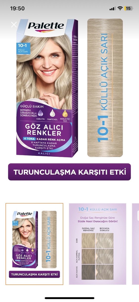 Palette saç boyası 4 tona kadar açma ve turunculaşma karşıtı etki sunar. Keratin, panthenol ve besleyici yağ içerir. 8 haftaya kadar kalıcıdır. ♀️