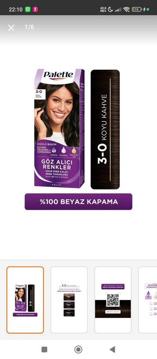 Palette 3-0 Koyu Kahve saç boyası, %100 beyaz kapama ve boyama sırasında güçlü bakım sağlar. Uzun süre kalıcı renk sunar.