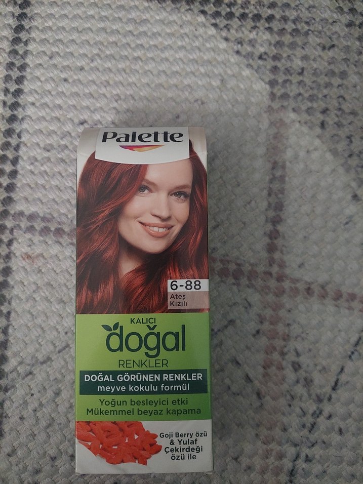 Palette 6-88 Ateş Kızılı kalıcı saç boyası, meyve kokulu formülü ve yoğun besleyici etkisiyle doğal görünen renkler ve mükemmel beyaz kapama sunar. Goji Berry ve ceviz özü içerir.