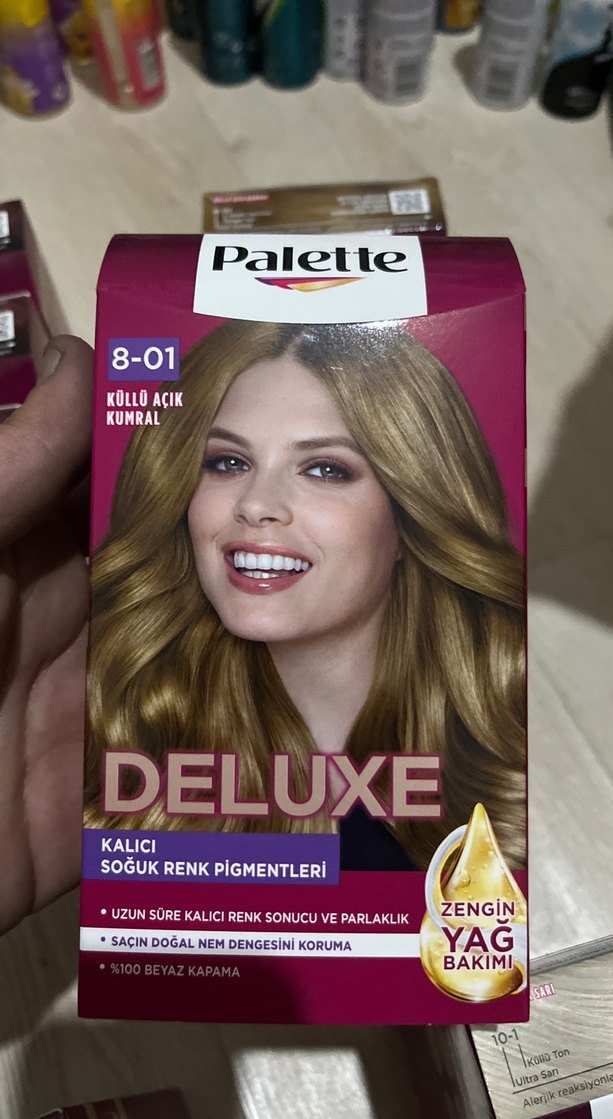 Palette Deluxe 8-01 küllü açık kumral saç boyası, uzun süre kalıcı soğuk renk pigmentleri ile zengin yağ bakımı sağlar ve saçın doğal nem dengesini korur. %100 beyaz kapama özelliği vardır.