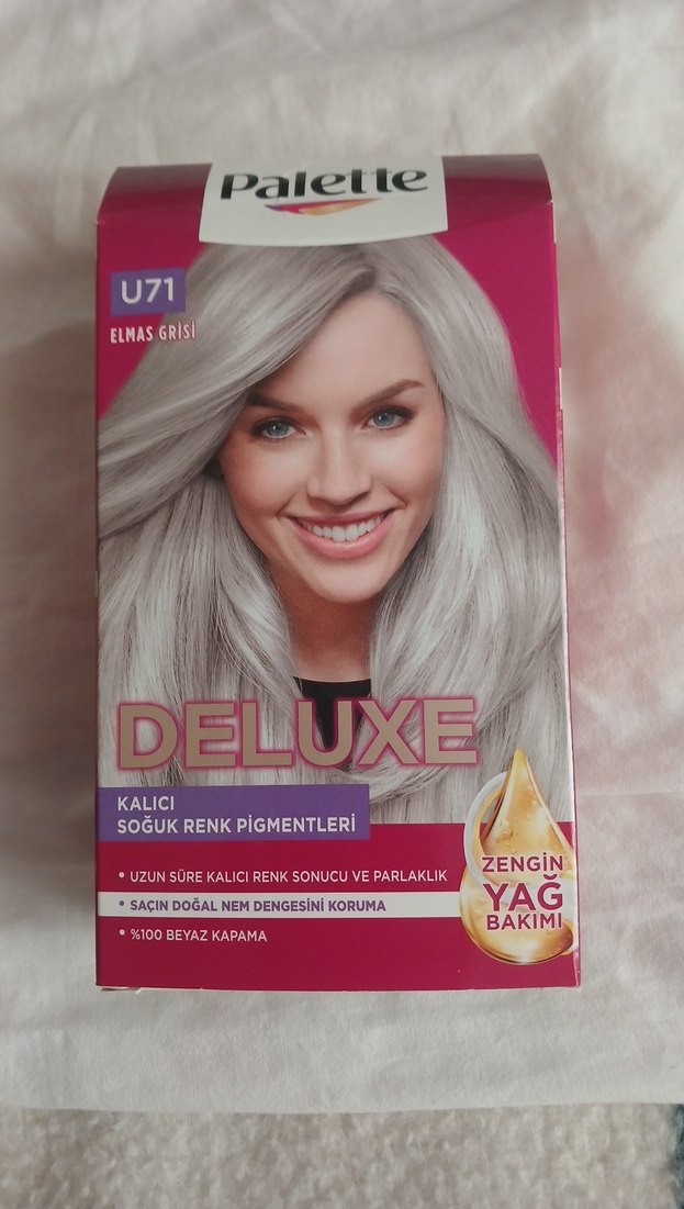 Palette Deluxe U71 Elmas Grisi kalıcı saç boyası, uzun süre kalıcı renk ve parlaklık sağlar. Saçın doğal nem dengesini korur ve %100 beyaz kapama sunar. Palette