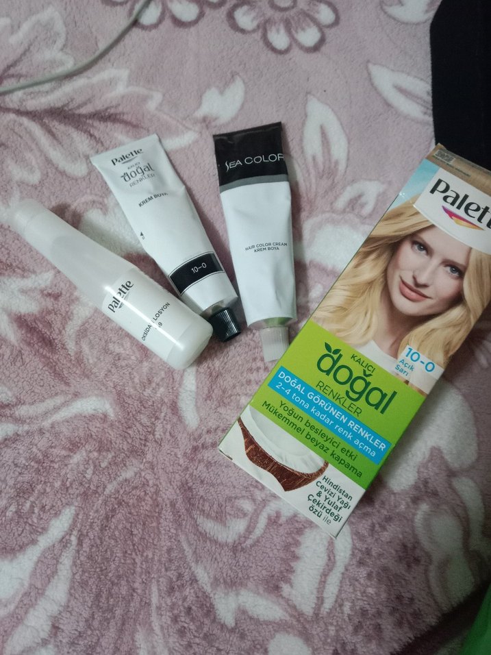 Palette doğal saç boyası 10-0 açık renk, Sea Color krem ve oksidan ile birlikte nazik boyama sağlar.