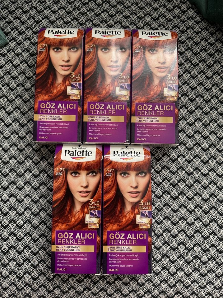 Palette kalıcı saç boyası, parlak ve uzun süre kalıcı renk sunar. Her kutuda 3'lü bakım bulunur. Hepsini alana şarap kızılı hediye son fiyat adet 150