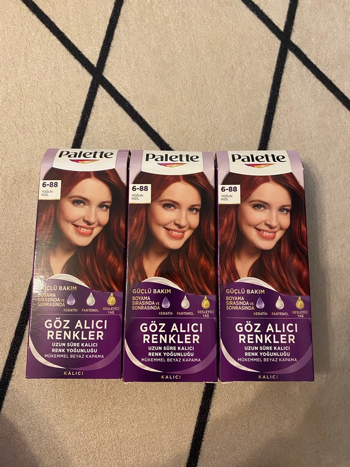 Palette 6-88 saç boyası, uzun süre kalıcı ve göz alıcı kızıl renk sunar, beyaz saçları mükemmel kapatır ve güçlü bakım sağlar.